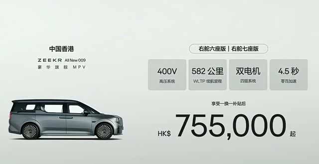 除此之外,针对中国香港地区销售的新款极氪009右舵版也同步上市,香港地区售价75.5万港币(折合人民币约70.27万元),并且新车将于2024年第四季度开启交付。