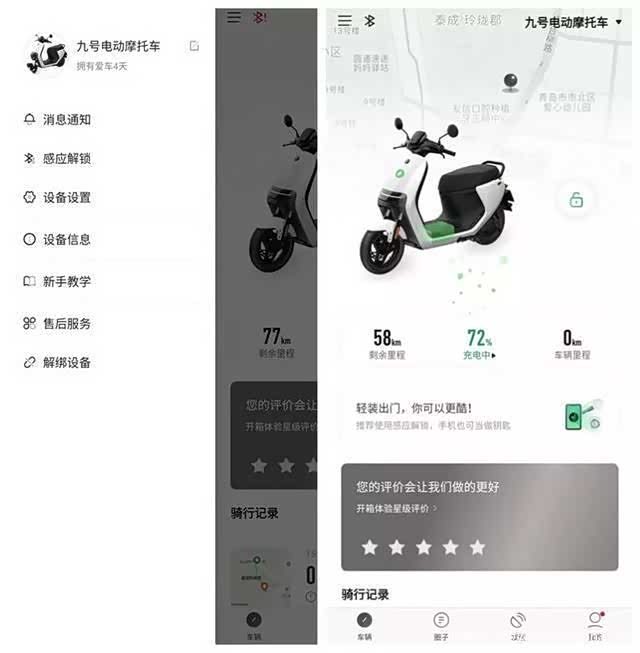 不同于小牛电动车的“智能”,只是进行简单的手机连接,九号电动车E的“智能”体现在用车的方方面面。