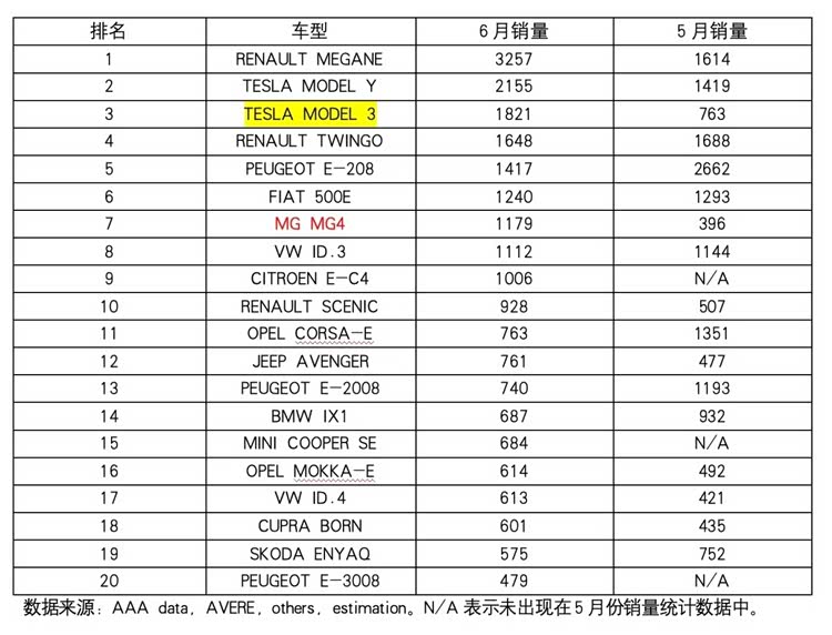 需要指出的是,可能是为了避免欧盟新关税政策的影响,像MG4和特斯拉Model 3都在做最后一搏。之前的生态优惠取消,已经“劝退”了不少法国市场的电动车玩家。而伴随着7月份欧盟对于中国电动车新关税的生效,这些车型的利润空间将完全不复存在。不过另外一款曾经在整个欧洲热销的雷诺旗下的Dacia Spring似乎早早放弃了最后的努力。其6月份在法国市场的销量仅为40辆,这也意味着雷诺在欧洲需要找到一款新的车型来重新扛起自己的电动车销量大旗。