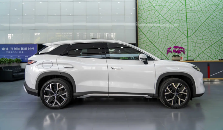 侧面并未发生很大变化,2025款宋PLUS DM-i新增了19英寸的铝合金低风阻轮毂,造型上更年轻运动。另外该车的长宽高分别是4775/1890/1670mm,轴距是2765mm,尺寸并无变化。