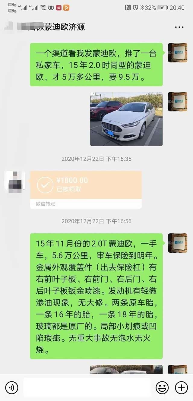 一家合作过的渠道看我的朋友圈在帮客户检测蒙迪欧,就给我们推了一台2015年2.0时尚型的蒙迪欧,车型是2013款 2.0L GTDi200时尚型,私家一手车,因为车主换新车了,所以要把这台车卖掉或置换。