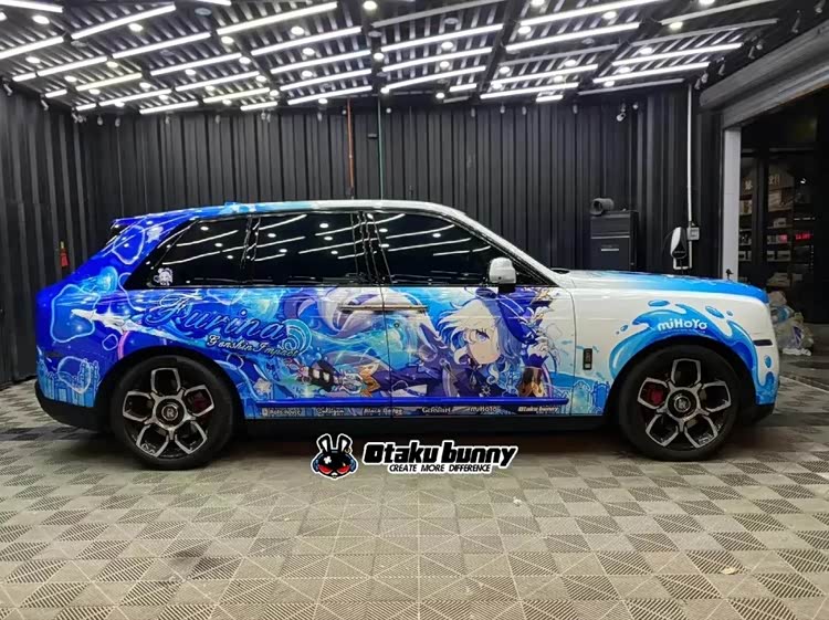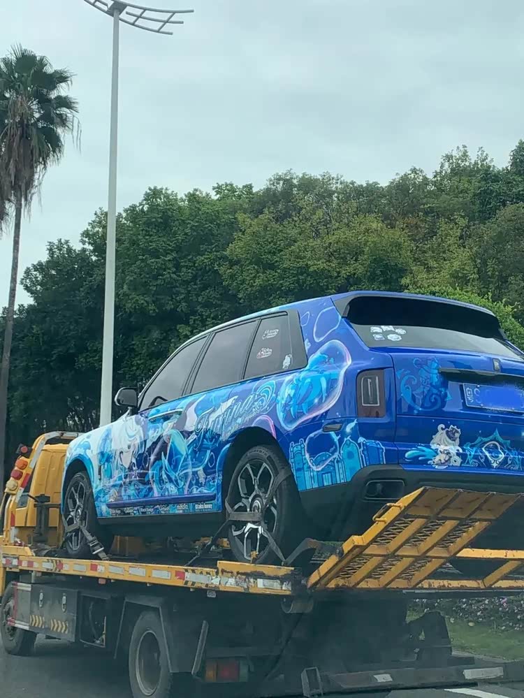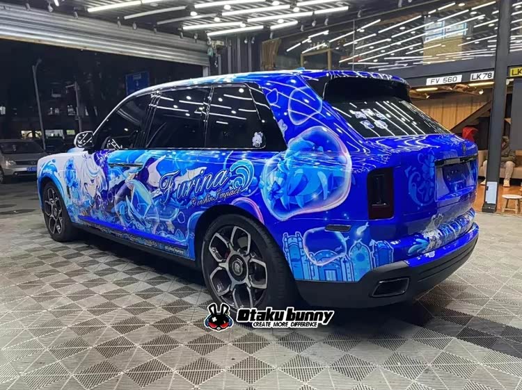 除了有小牛贴了这个涂装,还有台库里南也贴了同款动漫人物,过高定的劳斯莱斯,也看过黑武士版和各种套件版的劳斯莱斯,但像这种充满二次元元素的劳斯莱斯还真的第一次看见,这是不是也说明了,游戏里的“氪金大佬”其实就是现实中的霸总呢?