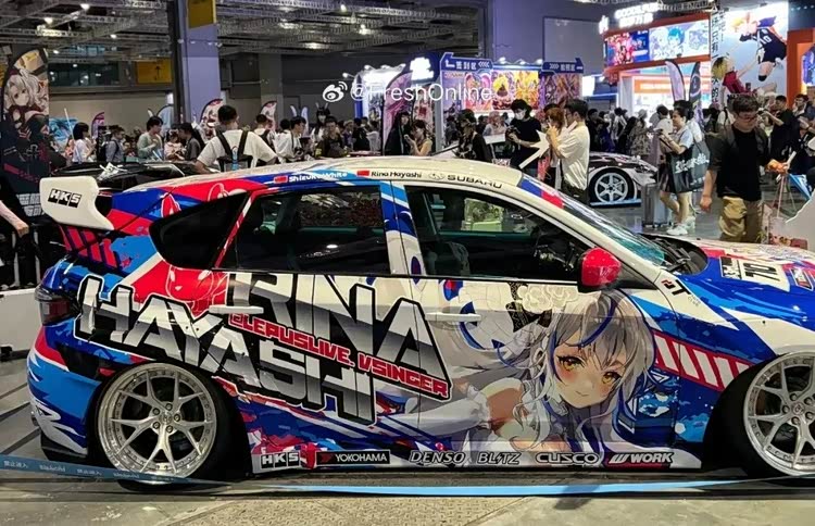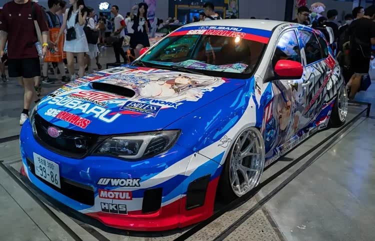 说起玩痛车,肯定少不了JDM的玩车大佬,动漫涂装+JDM是不是感觉特别搭,全部要素都拉满了,在这台WRX上的涂装是林莉奈RinaHayashi。