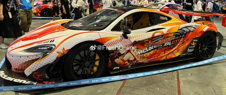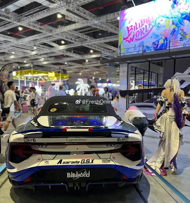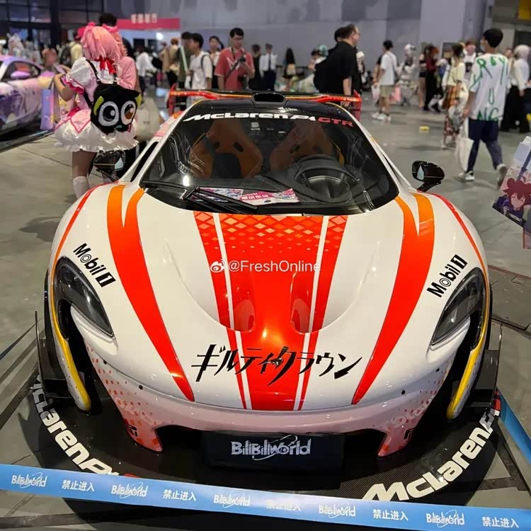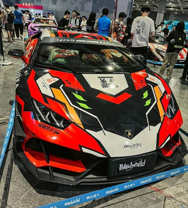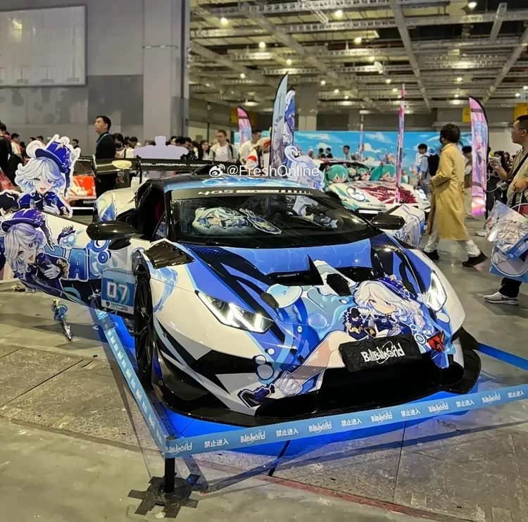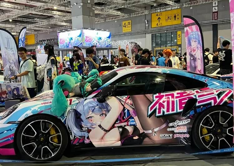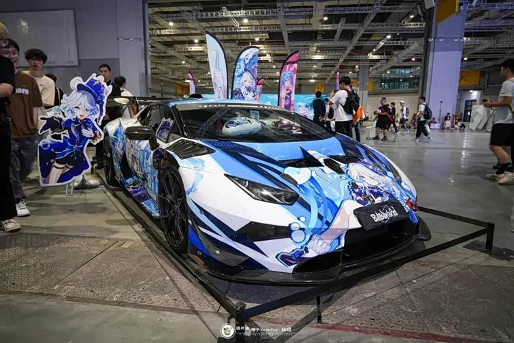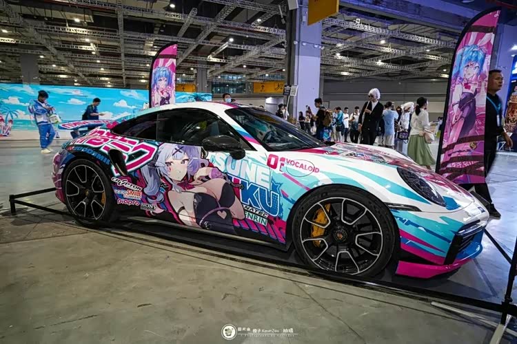 除了在漫展内的这些案例,在场外还有不少痛车案例,像下面这台宾利GT,涂装上的动漫人物正是乐正绫,虽然没改什么,但简单贴个涂装就已经足够特别了。