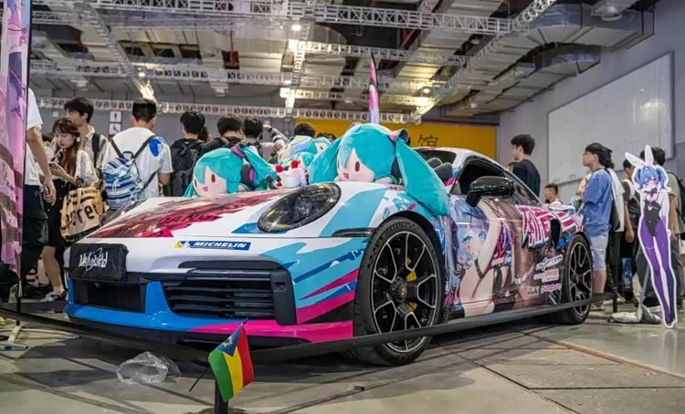 下面这个应该大家都很熟悉了,初音未来的涂装,曾几何时初音也算是大家的童年女神了,除了下面这台保时捷911外,还有很多车也曾贴过初音未来的涂装。