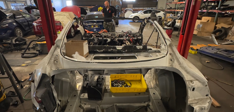 通过纪录片的片段能看到,他们首先是将一台特斯拉Model 3尽可能拆空,保留后续要用的东西就够了。但改哥目前不清楚他们是买的事故Model 3还是全新车,有知道的朋友可以说一下。