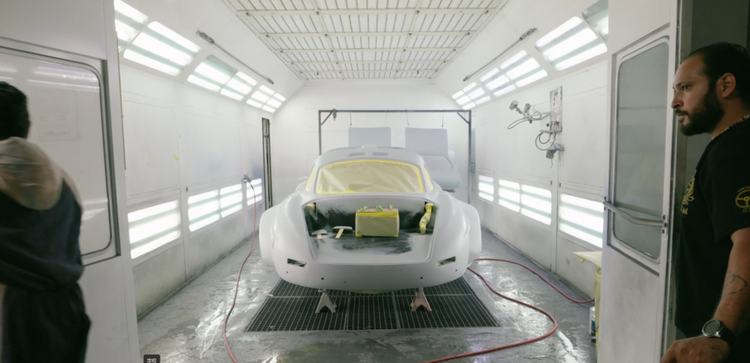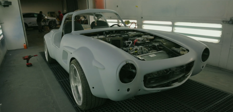 一切准备完毕后就可以准备进行喷漆的工作,其实这时候已经看到300 SL的雏形在了,更细节的地方就是轮毂选用了HRE的544C系列,很有复古的味道在,跟这台“奔驰300 SL”也是很搭。