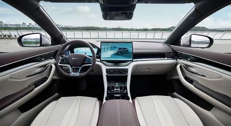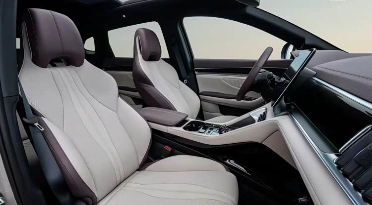内饰方面,2025款比亚迪宋PLUS DM-i的设计布局也没有明显改动,采用平底造型的多功能方向盘配搭嵌入式液晶仪表盘,大尺寸悬浮式中控屏以及水晶质感换挡杆也未有缺席。在此基础上,2025款比亚迪宋PLUS DM-i全系应用“玄天色+砂石米”的全新内饰配色。