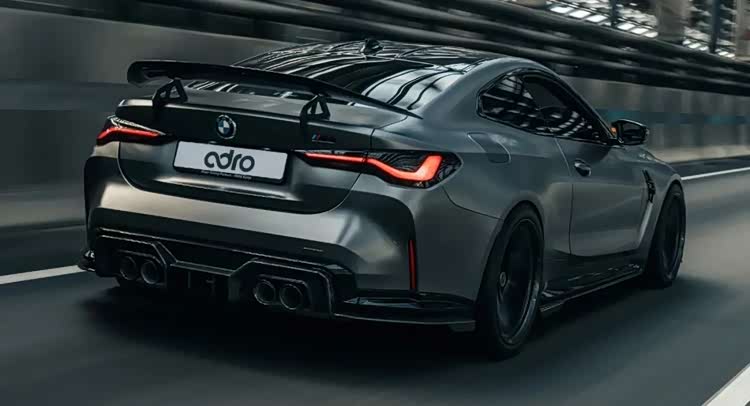 下面是由Adro设计的M4专属套件,最明显的变化是能看到前杠的造型发生了变化,据说能有效优化M4的空气动力学和提高进气。除此之外,这套件还包含了后唇、侧裙以及尾翼,标准的外观三件套。