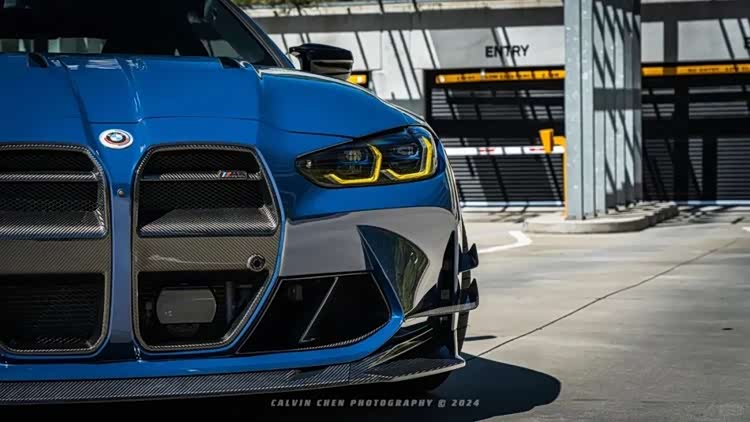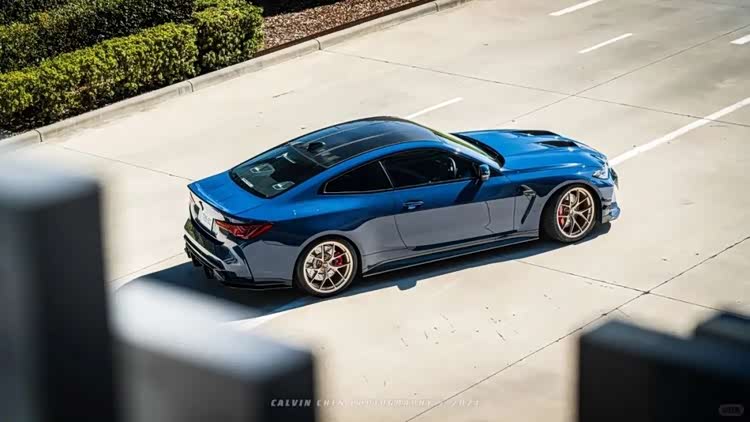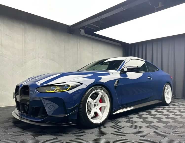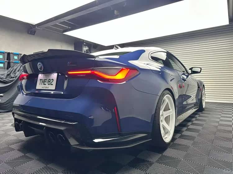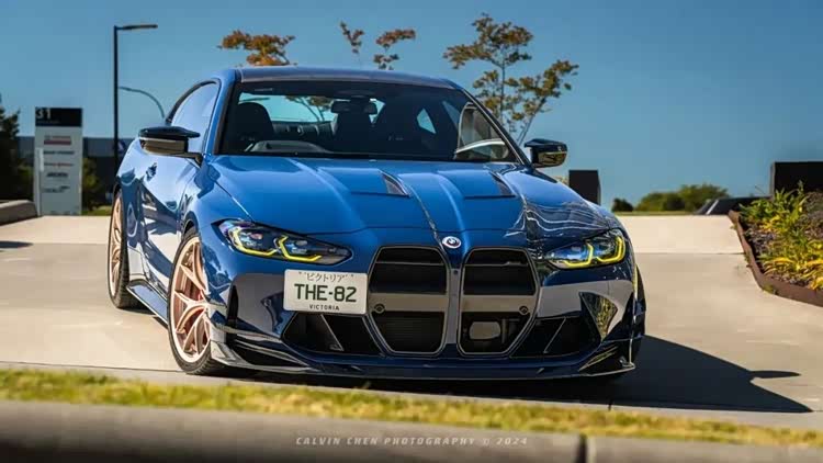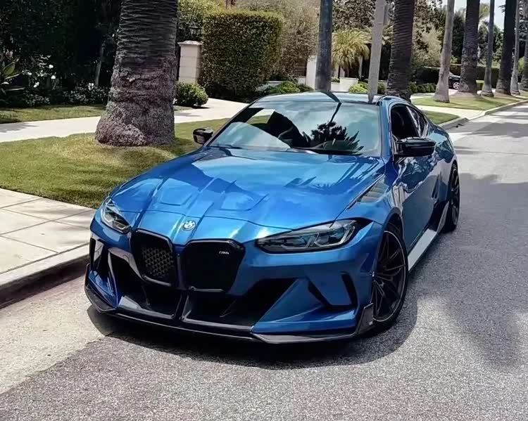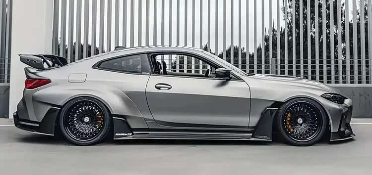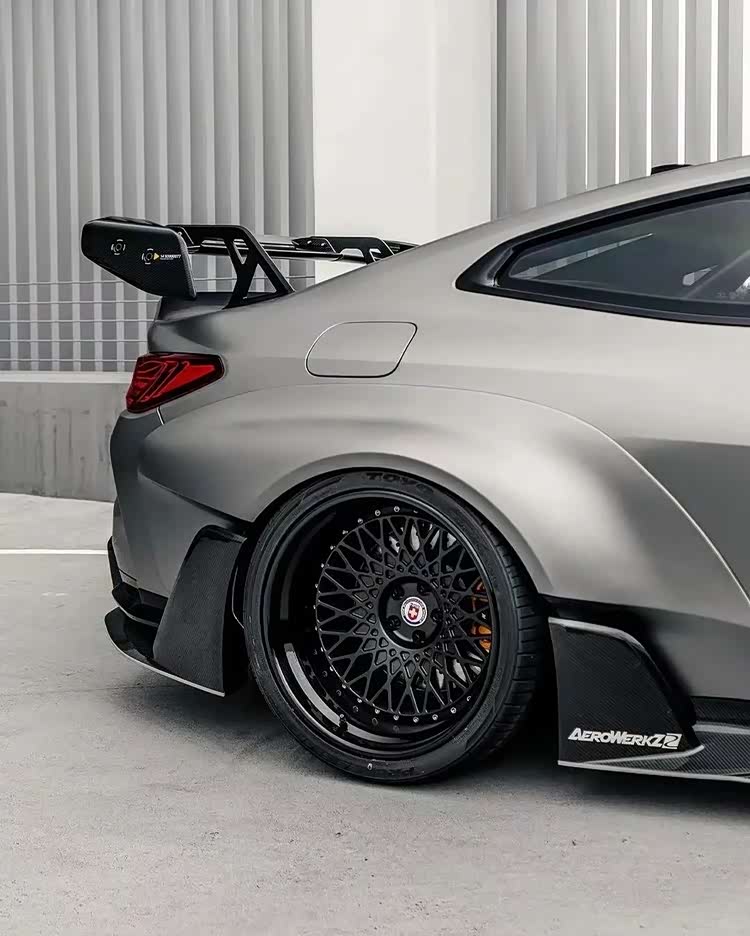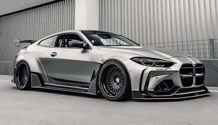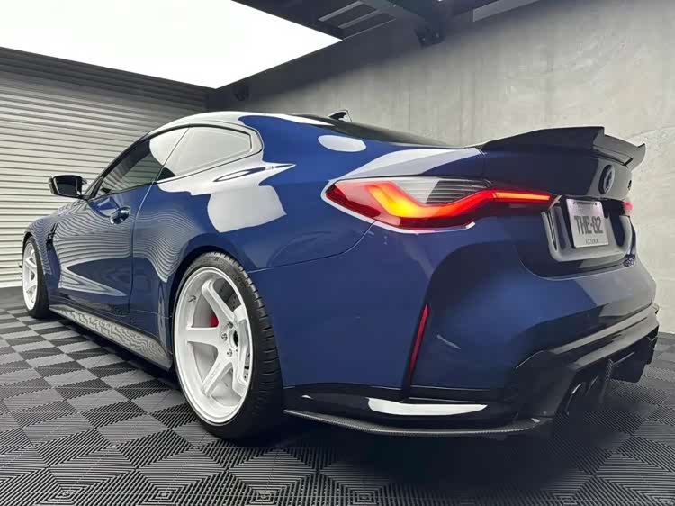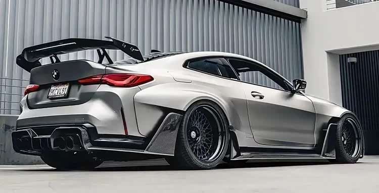 下面这台M4的套件更夸张,前后加了宽体之余,能看到前后唇的样式都极其战斗,而且尾部那大尺寸的尾翼也让这台M4看起来更具视觉冲击力,第一眼看过去这台车还是很有质感的。
