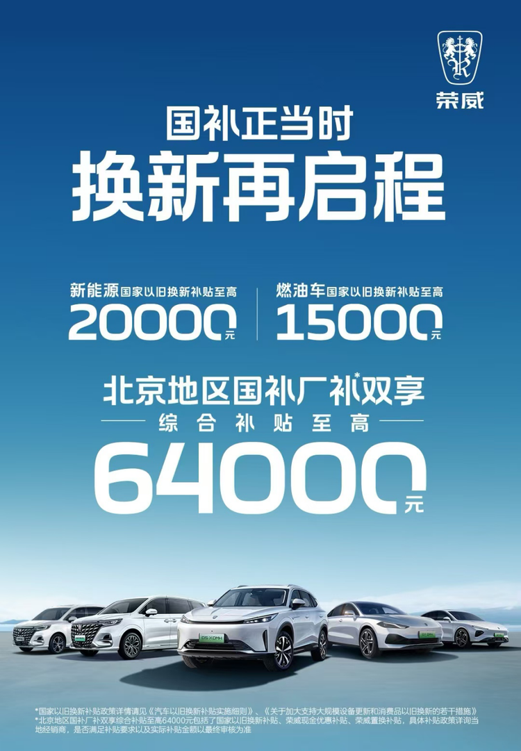 国补正当时,换荣威新能源,享至高6.4万元“京”喜补贴