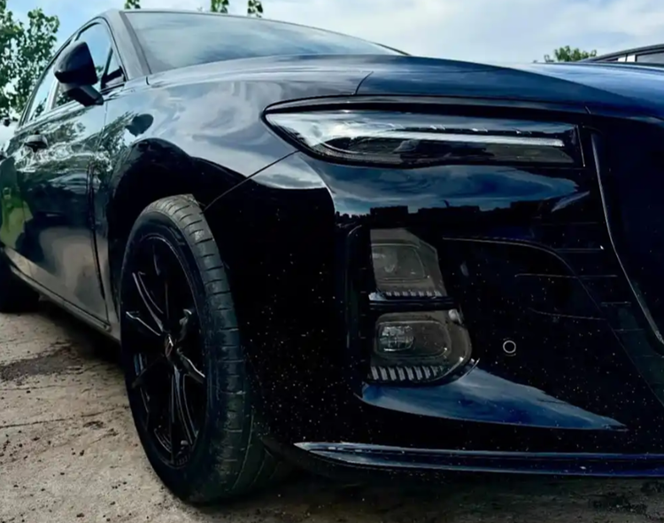 新款红旗H5并未进行大刀阔斧的换代,而是在细节上进行了精心雕琢。尤其是“黑武士”造型的推出,更是将运动元素发挥到了极致。车头部分,饱满有力的造型搭配直瀑式中央格栅,镀铬装饰条与红旗标志相得益彰,展现出大气而不失精致的设计风格。大灯组的设计兼顾了美观与实用性,LED远光技术的加入,让夜间行车更加安全便捷。熏黑版车型在格栅、轮眉、轮毂等细节处采用深黑涂层,进一步增强了车辆的运动气息。