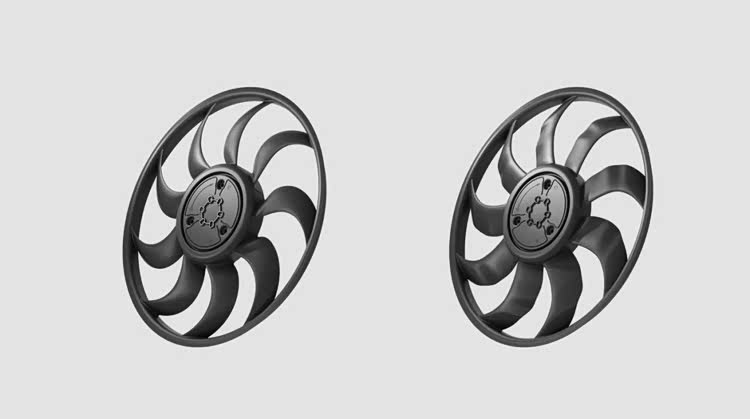 为了攻克这一难题,理想MEGA 研发团队和供应商一起,在原有方案基础上,对风扇的叶片数量、叶间距、叶片形状甚至挡风罩的形状进行调整。最终,九片仿生波浪形叶片方案出炉。