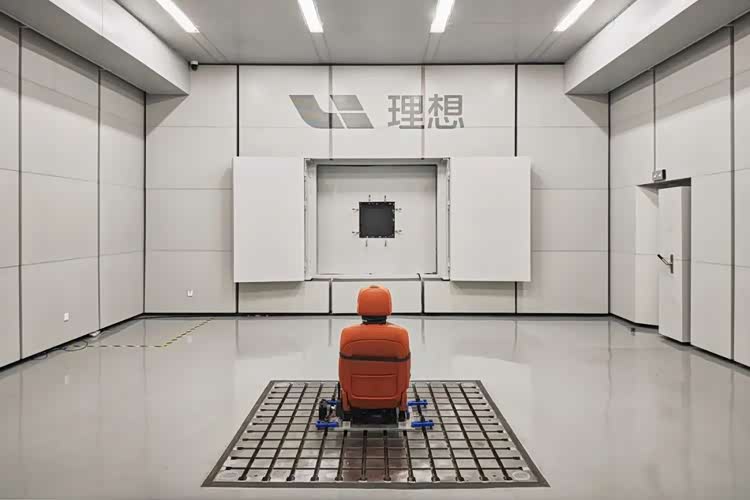 一个消声实验室,建造成本约千万,笔者参观时看到3个。为了寻找车辆在行驶过程中,车身骨架发出的低频共振异响,理想又花重金专门建了一个实验室,对车身骨架激发不同频率振动,寻找共振并优化。