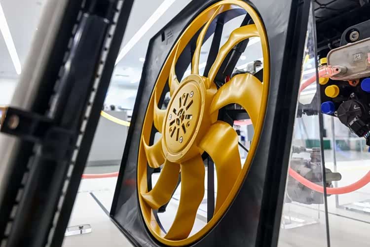 以散热风扇为例,众所周知, 理想MEGA(参数|询价)是一台大型MPV,并且搭载5C快充。本身车内空间大,开空调时对散热系统的要求很高,再加上快充时电池产生的可怕热量,于是工程师为这辆车搭配了一台峰值功率1100W的大号散热电机。