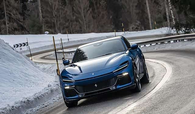 令人讶异的是,虽然搭载的是轮胎噪音较大的冬季胎,但是 Purosangue 的车内却相当宁静 (所以它才需要配置 Burmester 3D 环绕立体声音响系统),行路舒适性则就象是一辆稍微加高且再「软」一点点的 GTC4Lusso;驾驶手感方面,虽然确实没有 296 车系或 SF90 车系那么锐利,但是只要多注意一下车头右前方与边线、积雪,甚至护栏的相对位置 ,Purosangue 一样可以给予驾驶人非常精准的转向角度拿捏,软中带硬且较长的阻泥设定,则是替它换来了平顺且自在的动态,震动及弹跳也很温柔,非常符合它的定位。