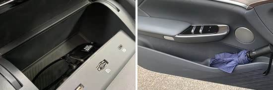 经过实测,除墨镜之外,其他固定物品均可以合理地放置在评测车前排各个储物空间内。虽然没有专用的眼镜盒,但中控台下方一个有个独立的储物空间,可以放下墨镜。需要说明的是,评测车车门储物空间尺寸较小,还有进一步提升的空间。