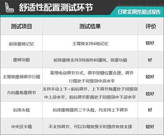 二、舒适性配置测试环节