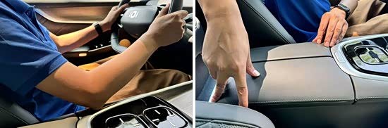 前排中央扶手造型规整且尺寸适中,表面采用软性材质包裹,枕靠舒适性不错。中央扶手虽然不支持前后移动和角度调节,但驾驶者在驾驶过程中依然可以将肘部倚靠在上面。
