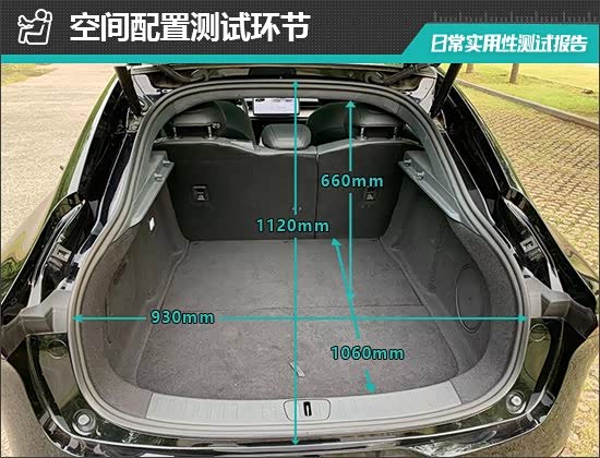 后备厢内部造型较为规整,地板平整度不错,掀背式设计也让拿取物品很方便。后排座椅支持比例放倒,放倒后可以进一步拓展后备厢空间。对于评测车后备厢的基础数值,我们也进行了实测,开口长度为1120mm;开口宽度为930mm;后备厢进深为1060mm;后备厢地台与顶部的垂直高度为660mm。
