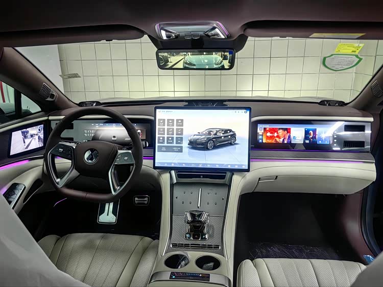 内饰将采用与全新腾势N7类似的家族化设计语言,对称的中控台左右各内嵌全液晶仪表盘以及副驾娱乐屏,加之中间悬浮式中控大屏,营造出满满的科技氛围。而双拼色风格配合木纹饰板点缀,加之128色氛围灯、四辐式方向盘、水晶电子挡把等,则将豪华感拉满,此外还将配备双50W手机无线充电、帝瓦雷音响、前后智能冷暖双冰箱等高端配置。而前后排座椅均支持电动调节/加热/通风/按摩等功能,副驾为零重力座椅,后排还提供CLA卷轴式坐垫。
