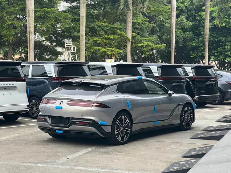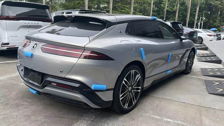 车身侧面采用猎装轿跑造型,车身一条“Z”字形装饰线与侧进气口融为一体,并与流畅的腰线相辅相成,再配合21英寸多幅式轮毂+红色刹车卡钳,营造出蓄势待发的姿态。而悬浮式车顶、隐藏式门把手、无框车门以及电子外后视镜的加持,又带来了时尚前卫属性。车身尺寸长宽高为5180/1990/1500(1480)mm,轴距3125mm,大过享界S9、保时捷Panamera。