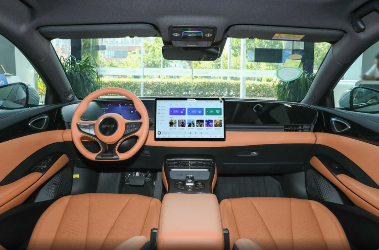 内饰方面的变化主要集中在中控台上,2025款车型除了悬浮式的中控屏之外,中控台上还有一块贯穿整个台面的饰板,液晶仪表屏则嵌入在其中,另外,功能配置方面,2025款海豹新增了50W手机无线快充、方向盘加热、前后排多层隔音玻璃、智能光感天幕等配置。