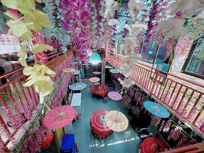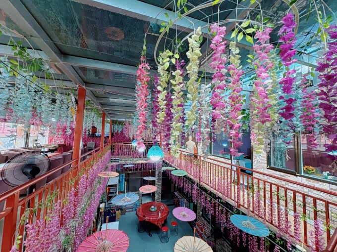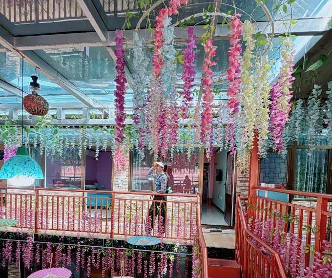 推荐理由:走进民宿,首先映入眼帘的就是2楼的阳光房那一串串紫色的花藤,它们在阳光的照耀下闪闪发光,犹如梦幻般的仙境。而那些灯笼和油纸伞更是增添了几分诗意,让整个空间充满了浓厚的文化氛围。在这里拍照,你可以尽情发挥你的创意,摆出各种仙气十足的姿势。无论是侧脸微笑,还是背影杀,都能轻松拍出大片感。而且,这里的紫色花海和文艺气息,也会让你的照片更加有特色,成为朋友圈的焦点。