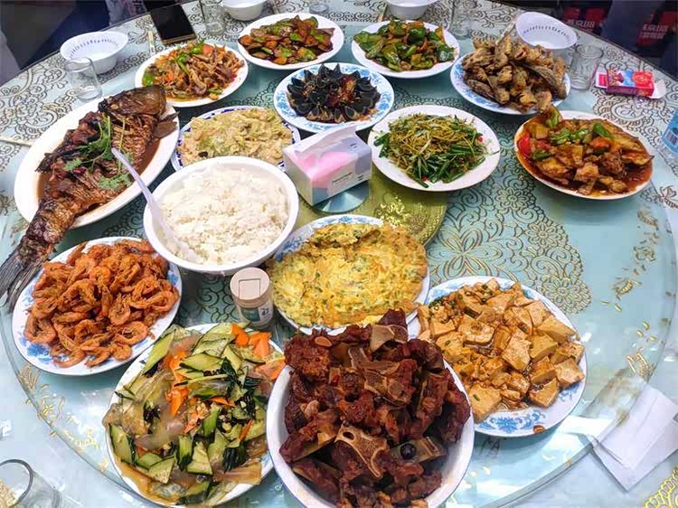 各类主食:贴饼子、菜团子、豆饭、家常大饼、馒头、面条、小米粥、棒渣粥等。