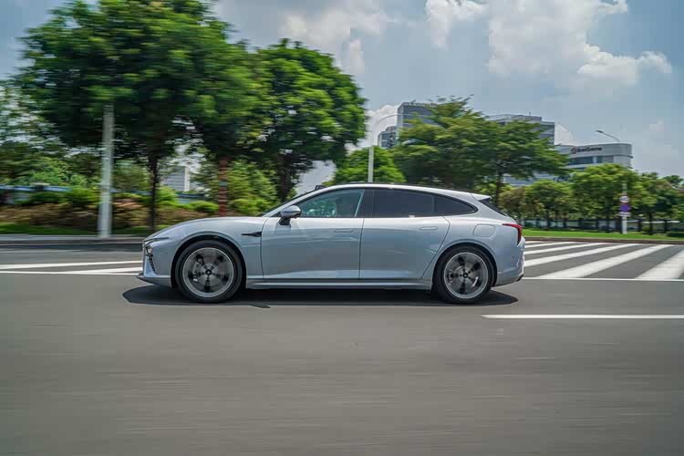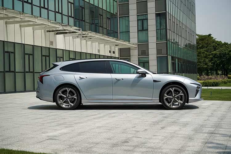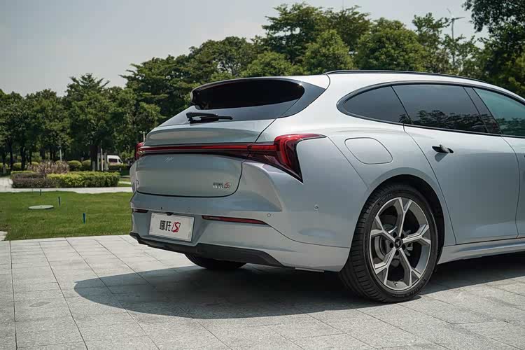 从猎装车最美的后侧45°看过去,修长的车身造型,搭配全新样式的轮圈、车顶行李架、扰流板以及外抛式的翼子板等,让新车具有优雅造型的同时,又颇具几分运动气息。而纯电和增程版车型最大的不同,仅在于增程版车型在左后翼子板配备了油箱盖板。