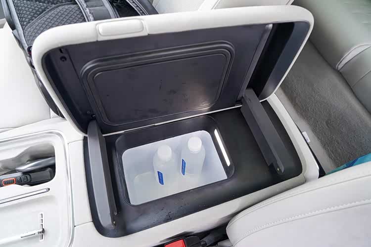 扶手箱内可选配带有独立压缩机的双侧开门冰箱,容积达6.5L,温度和在-6℃到50℃之间调节,也支持离车不下电长时间保温。