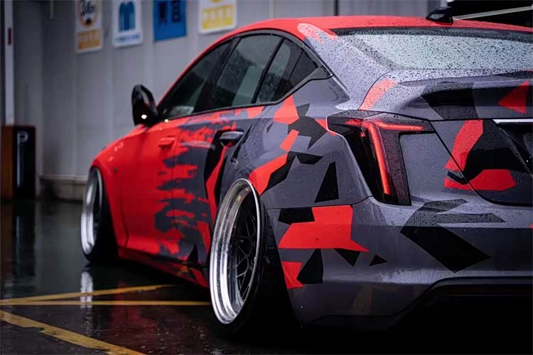 改装后的CT5,车身姿态被重新定义,低矮而富有张力,仿佛贴地飞行的猎豹,展现出前所未有的运动气息。AIRBFT气动避震的加入,不仅让车身高度随心调节,更在保持卓越操控性能的同时,赋予车辆更多变的姿态。无论是静态展示还是动态行驶,CT5都能以其独特的低趴魅力,吸引无数目光。