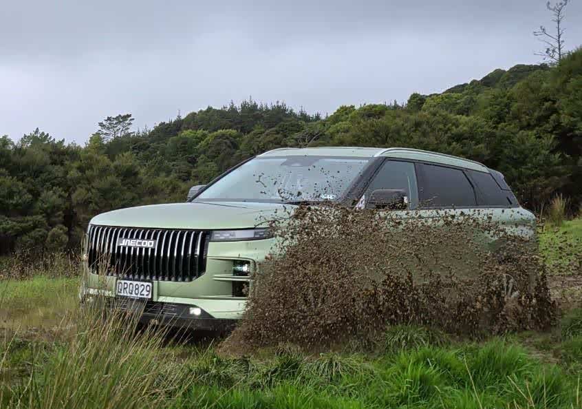 我们在道路上对 J7 EX+ 进行了为期一周的自由行驶,但我们也与 Jaecoo NZ 一起参加了一次简短的非柏油路面发布会,他们非常热衷于展示这款车在湿滑路面上行驶的能力。