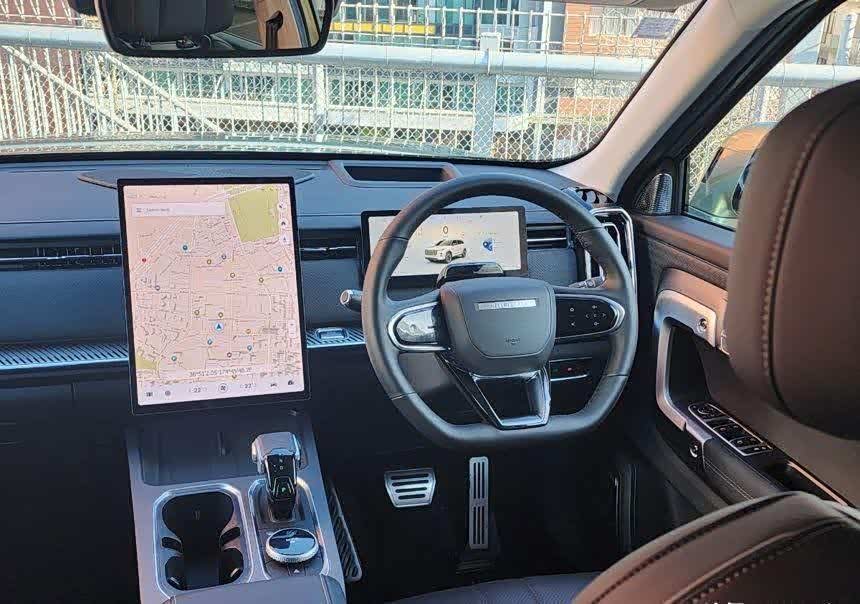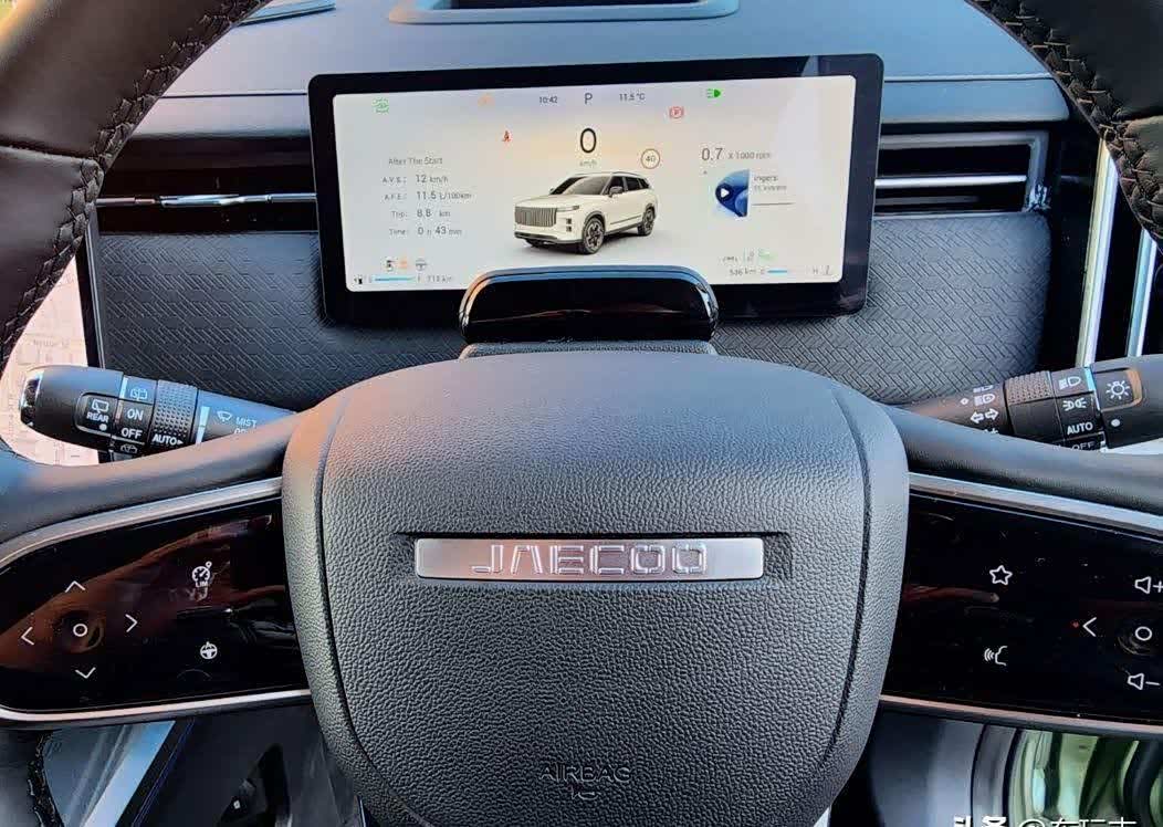 如果你喜欢你看到的东西,那么你会更喜欢它的内部。J7 充满了厚重的造型,是的,甚至更多受路虎启发的设计细节,甚至包括方向盘的形状和横跨凸台的细长品牌标志。