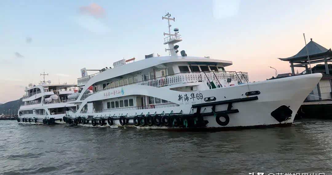 到达朱家尖码头,将车停放在码头停车场后就准备登船。普陀山启用线上预约式门票登记,需要提前一天以上,十四天以内,在官方公众号预定门票和船票。预定之后,现场扫身份证就可以直接进入。