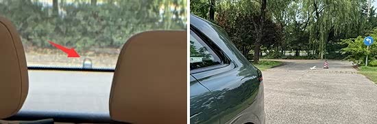 后方视野测试中,依旧将桩桶固定摆放,随后移动车辆直至可以观察到桩桶上沿为止,后方视野所测得的距离为12.1m,在测试过的同级别车型中处于上游水平。