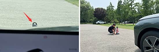 在测试前方视野环节,我们采用高70cm的桩桶作为参照物,随后调整车距,直至在主驾驶位可以看到桩桶上沿。经过测试,桩桶与车头最终测得的数据为3.25m,在测试过的同级别车型中处于中游水平。