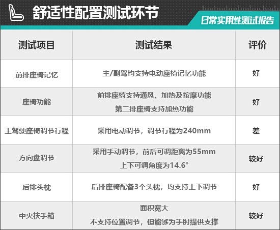 二、舒适性配置测试环节