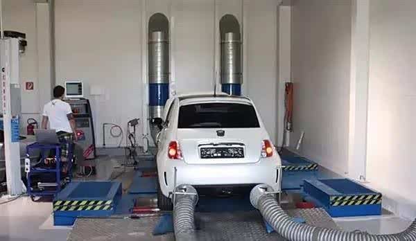 随后会将驱动轮放在转鼓上(类似于测马力用的马力机)通过给转鼓增加反向阻力来测试,还要在滚柱台上增加风扇对着车头部分,以便让车辆模拟出高速行驶时的气流,并把车内灯光、空调等功能关闭,而不是真的把车开出去跑。