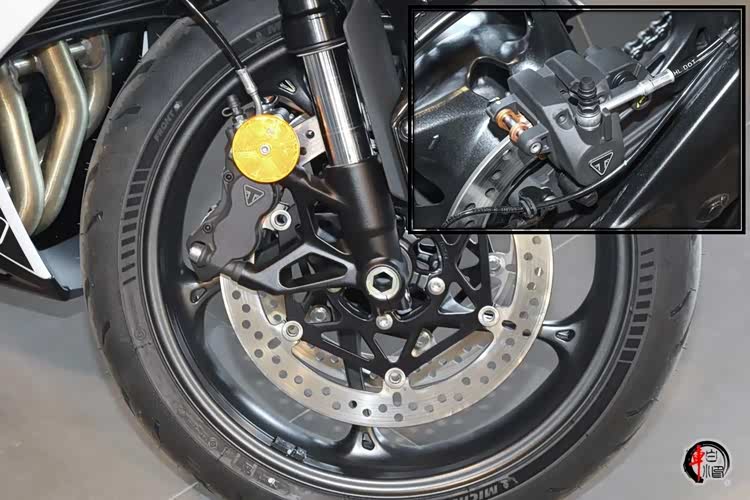 硬件方面,Daytona 660减震系统采用SHOWA SFF-BP 41mm倒置前叉,搭配预载可调中置后减震,能有效吸收路面震动,提升骑行舒适性。刹车系统采用前后盘刹,前310mm双盘径向四活塞卡钳,后220mm单盘单活塞卡钳,标配双通道ABS系统。能在紧急制动时防止车轮抱死,提升骑行安全性。缺少的TCS牵引力控制系统算是一大短板。