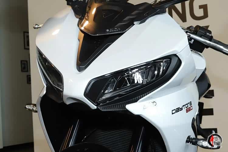 Daytona660的外观设计是基于三叉戟660基础上衍生而来。全整流罩的造型设计,头部采用了分体式大灯组,全LED光源的应用不仅提升了照明性能,也让车头看起来更加犀利,富有视觉冲击力。车身侧面线条与油箱和后座融为一体,营造出凯旋运动系列车型的标志性轮廓。