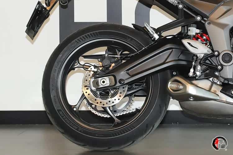 Daytona 660车身采用轻量化设计的钢制编织网式框架结构,既保证了车身强度,又提升了整车的操控性和加速性能。与之相匹配的是钢制后摇臂,则进一步增强了车身的刚性。此外,Daytona 660的轴距达到了1425mm,这使得车辆在高速行驶时更加稳定。整备质量为201kg,油箱容量为14升。座椅设计两侧收窄,810mm的座椅高度对于身高而言门槛并不高。