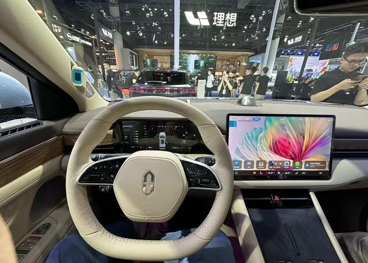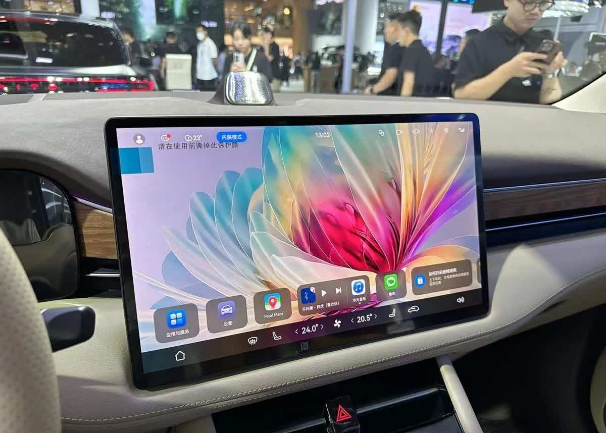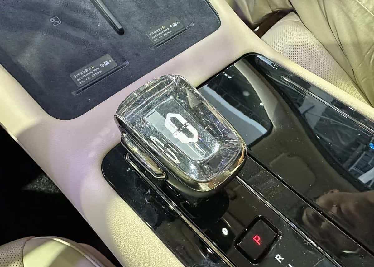 坐进到车里,这辆新款问界M7的方向盘采用和内饰相同的配色,看上去协调了许多。对比现在很多的新能源车在车里过多堆砌屏幕,新款问界M7就显得比较简洁,前排只有全液晶仪表盘和横向布置的中控多媒体屏幕。正在使用华为手机的用户对于这套车机一定不陌生,用的是HarmonyOS智能系统,不管是屏幕的显示效果还是车机系统的流畅度都表现的挺出色的。另外屏幕下面还给到了带有散热孔的手机无线充电面板,表面是做了防滑处理,手机放上去不会来回晃动。换挡杆造型做的很精致,用到了钻石切割的设计工艺,抓握手感挺不错的。