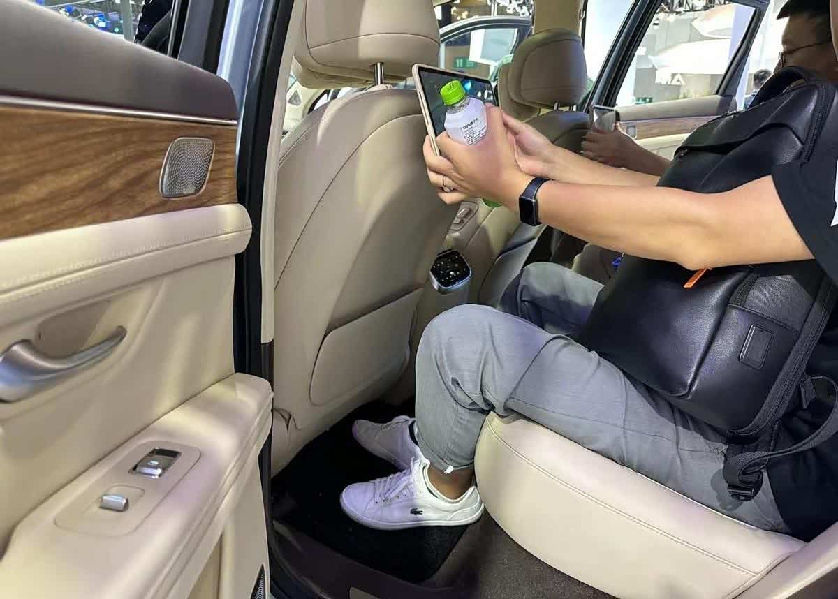 取消了第三排带来的好处就是后排和后备厢都能有不错的空间表现,后排座椅放倒后能和后备厢形成纯平的地台,放上一张充气垫就能躺在车里睡觉。根据现场销售人员的介绍,主副座椅背面的平板电脑是需要另外付费购买的,平板可以随意取下。这里我觉得家里没有平板电脑的用户可以考虑选配,不用车的时候可以放在家里使用。