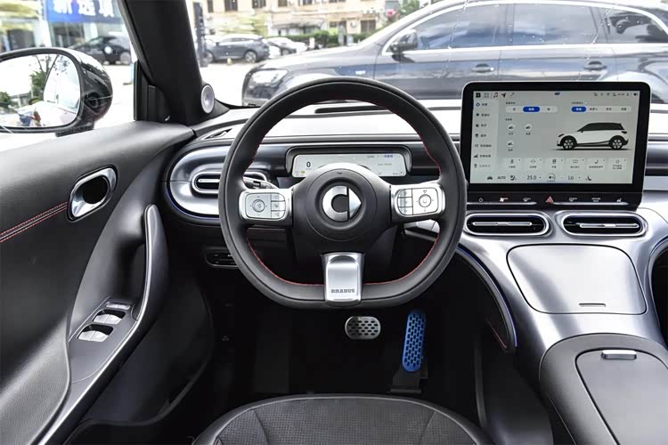 除此之外,车内的BRABUS黑色内饰、带BRABUS标识的翻毛/真皮拼接方向盘,以及德国进口金属PVD INS仪表台贴片等等,每一处细节都透露着smart对品质的追求。