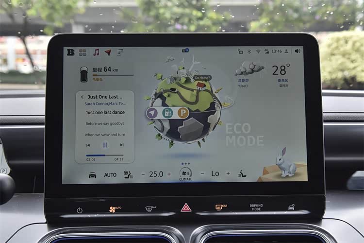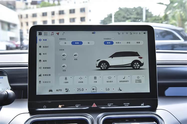 中控屏的UI界面设计与众不同,这也与整车的灵动、年轻风格保持高度一致。其主要的控制功能都被设计在主界面上,一键直达的操作方便又快捷。你只需轻轻一点,就能调节车内的温度,而且智能语音助手随时待命,只需一句话,它就能帮你完成导航、音乐播放等操作。除此之外,你还可以通过手机远程控制车门开关、车辆启动、充电状态查询以及寻车。