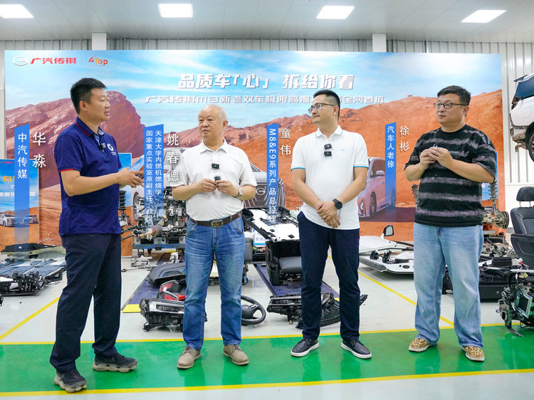 参与本次拆解的嘉宾有天津大学内燃机燃烧学,国家重点实验室原副主任、教授、博导姚春德,广汽传祺M8&E9系列产品总经理童伟,汽车人老徐(徐彬)、中汽传媒华淼,从专业技术角度出发,深挖传祺M8背后的制造工艺和安全设计。