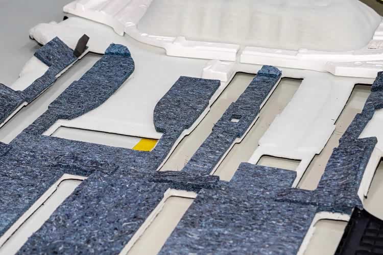 在本次高温挑战中,传祺M8大师超级混动版怠速NVH成绩达到40.3dB,80km/h速度下,噪声值也低于60dB。对于静谧舒适感的打造,全新M8全车采用PP/PET双组份吸音棉,布置在五门门饰板、立柱饰板、顶棚、挡泥板等部件,数量高达43片,重量约3kg,铺平总面积超5㎡。其克重越大,吸音性能越好,有利于降低整车路噪和风噪,提升整车静谧性。