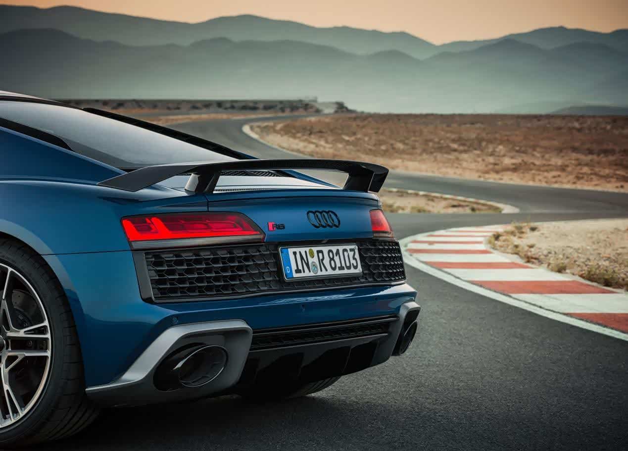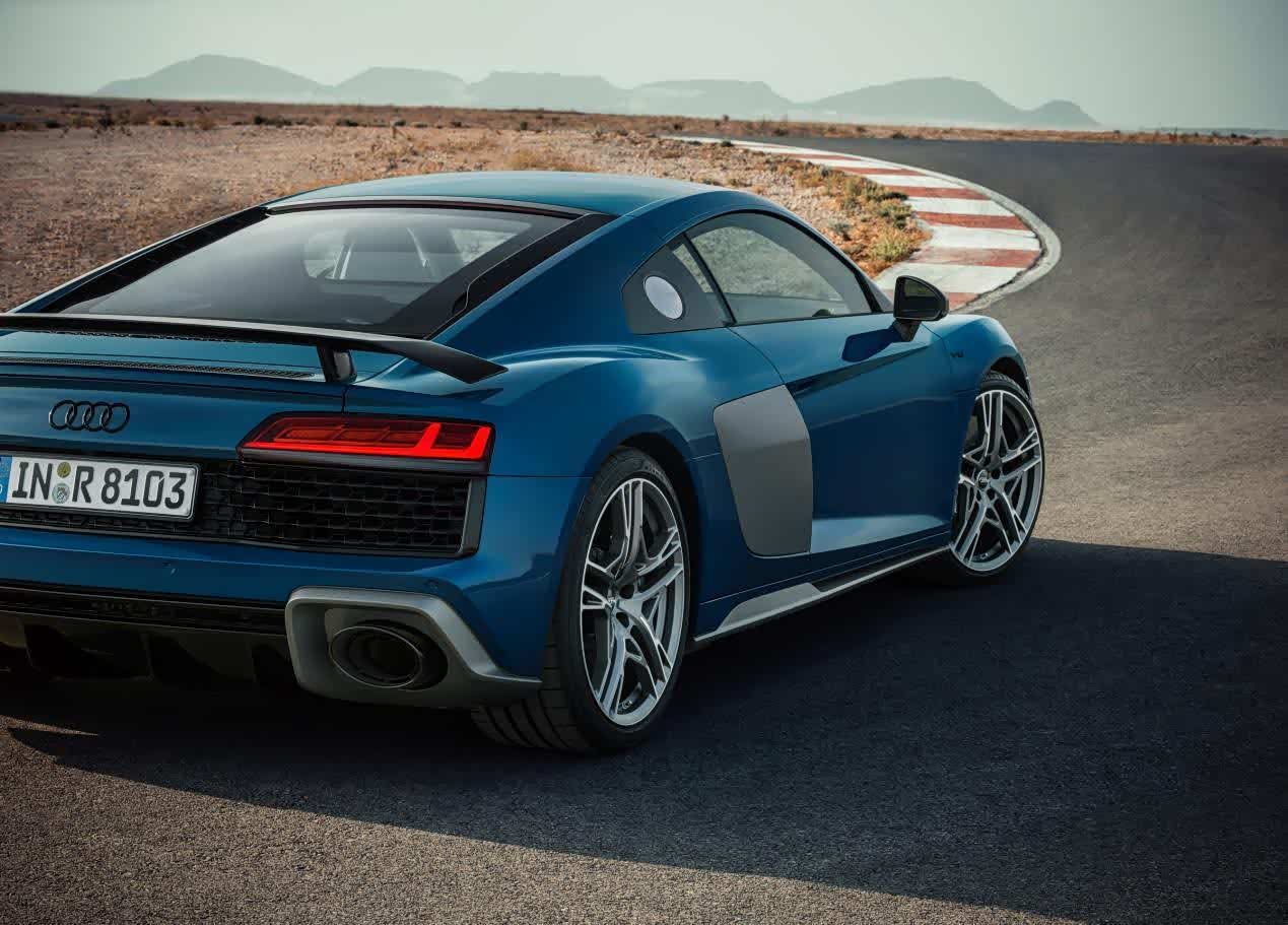 新奥迪R8 V10 Coupé Performance棱角分明的前脸设计为全新Audi Sport车型的设计精髓。其犀利、流畅的线条不仅提升了整体的感官印象,同时也诠释了奥迪家族精湛工艺的科技杰作。新奥迪R8 V10 Coupé Performance作为顶级的超跑车型,标配了奥迪LED激光大灯,这也是整个奥迪产品系列中首次应用的最新灯光科技。当时速到达60km/h时,四束高功率激光LED将切换至激光大灯模式,并提供更强有力的照明射程,确保您与他人在行车过程中时刻相互可见。新奥迪R8 V10 Coupé Performance配备的后尾灯带有动态转向灯功能,与前大灯呼应的设计展现出一致的整体感观印象。从汽车的后部视角看,后尾灯的设计采用整体融合式,与后部空气进气口交相呼应,彰显出浑然一体的精湛工艺。