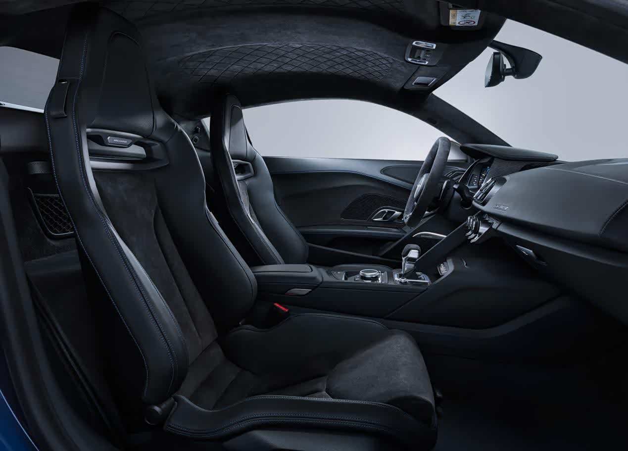 新奥迪R8 V10 Coupé performance巅峰室内设计以极简主义和朴素的方式设计,几乎所有东西都用天然皮革装饰,您还可以注意到铝和碳纤维的许多元素。按钮和旋钮的数量已减少到必要的最低限度,并且不会不必要地分散驾驶员的注意力。新奥迪R8 V10 Coupé performance的方向盘后面有用于手动换档的拨片和四个可用于控制车灯、雨刷、车载电脑显示的信息或巡航控制的换档器。新奥迪R8 V10 Coupé performance带有集成头枕的深座椅在转弯时完美支撑身体,并提供自信和运动的姿势。同时,它们非常柔软,适用于较长的路线和日常驾驶,不得不说新奥迪R8 V10 Coupé performance在内饰设计符合驾驶需求的同时,也彰显了奥迪汽车“以人为中心”的造车理念。